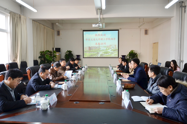 12月3日上午,华东交通大学原校长、党委书记,华东交通大学理工学院院长张安哥,华东交通大学党委委员、校长助理陈进一行6人访问我院。我院副院长薛爱兴、党委副书记孙文博、副院长张乐乐、副院长徐爱国及各相关单位负责人接待了华东交通大学理工学院的各位客人。