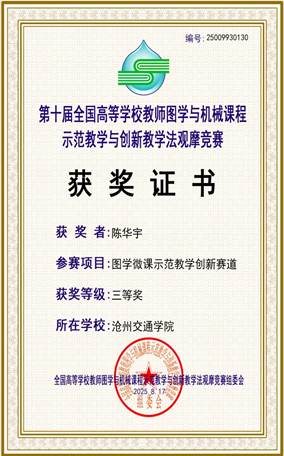 在此次高规格竞赛中,我校机械与动力工程学院教师表现亮眼,分获两大赛道奖项:在“图学微课示范教学创新赛道”中,封旭佳老师获二等奖,陈华宇老师获三等奖;在“机械微课示范教学创新赛道”中,张志芳老师获二等奖,李永越老师、周美玲老师均获三等奖。