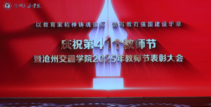 9月10日下午,我校在天佑会堂举办庆祝第41个教师节暨沧州交通学院2025年教师节表彰大会。我校校长章梓茂,党委书记庞更新,副校长赵金楼,党委副书记吴立军出席教师节表彰大会,各单位中层干部和辛勤耕耘在一线的全体教职员工参加会议。