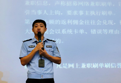 市公安局反诈中心民警胡博程以“别让诈骗吞噬你的青春梦想”为主题展开宣讲。他重点解析了大学生易遭遇的五类典型诈骗手段:兼职刷单、虚假投资理财、网络贷款、冒充客服退款诈骗及冒充公检法诈骗。胡警官通过还原真实案例,生动拆解了诈骗分子的作案手法,帮助学生直观地认识诈骗行为的特征。针对防范要点,他提出三项实用建议:一是摒弃“贪利”思想,杜绝侥幸心理;二是强化个人信息保护,严防敏感信息泄露;三是遇事保持冷静,通过多种渠道核实信息。现场还分享了易记易懂的防诈口诀,助力学生掌握关键防范要点。
