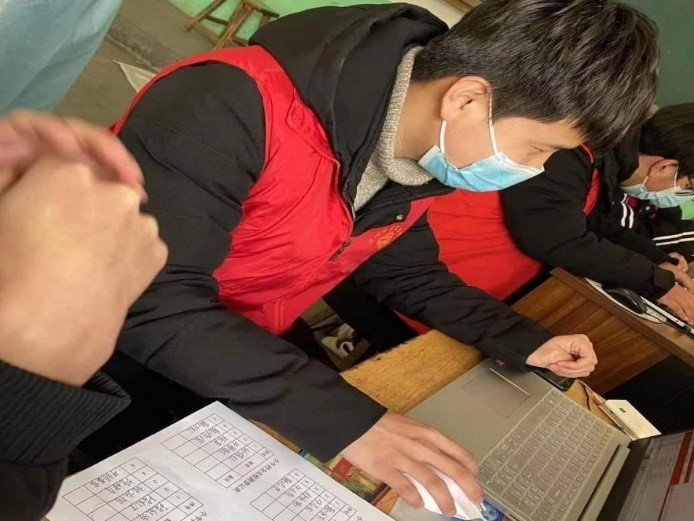 金融工程1904班钟怀鑫报名参加河北省承德市丰宁满族自治县黄旗镇上窝铺村的防疫志愿者工作。她主要负责电子大数据整理、核酸检测排查表、返乡人员日报表制作以及疫情防控宣传等工作。她说:“成为一名志愿者,担起了许多责任。我将用心做好每一份报表,完成每一个任务,认真体悟作为一名志愿者的真谛。寒冬虽至,但我们在寒冷中感受到了温暖。”