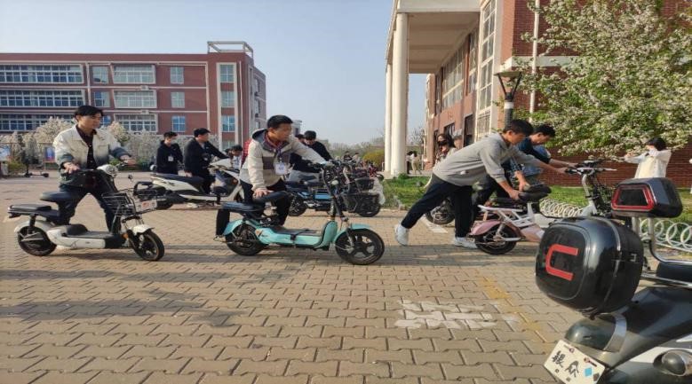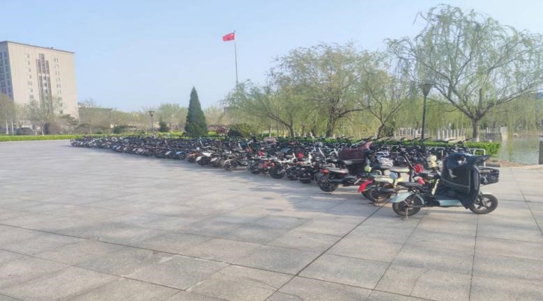 为引导我校师生有序摆放电车,消除随意停车给校园带来的安全隐患。近期,我校学生安全协会开展了规范停车活动。