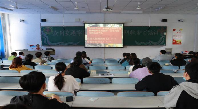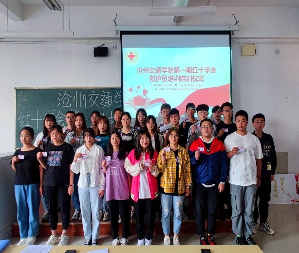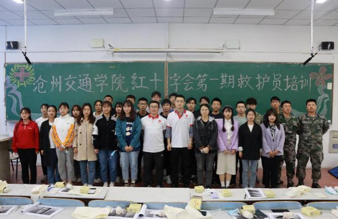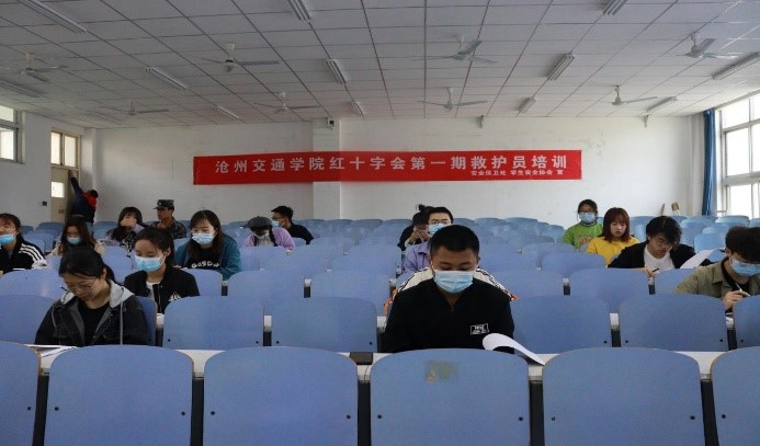 为弘扬“人道、博爱、奉献”的红十字精神,进一步提高同学们应对突发事件和意外伤害时的自救互救能力,我校学生安全协会协同黄骅市红十字会开展了沧州交通学院第一期红十字会救护员培训。黄骅市人民医院李华清、黄骅红十字会何风等培训讲师受邀参加活动。